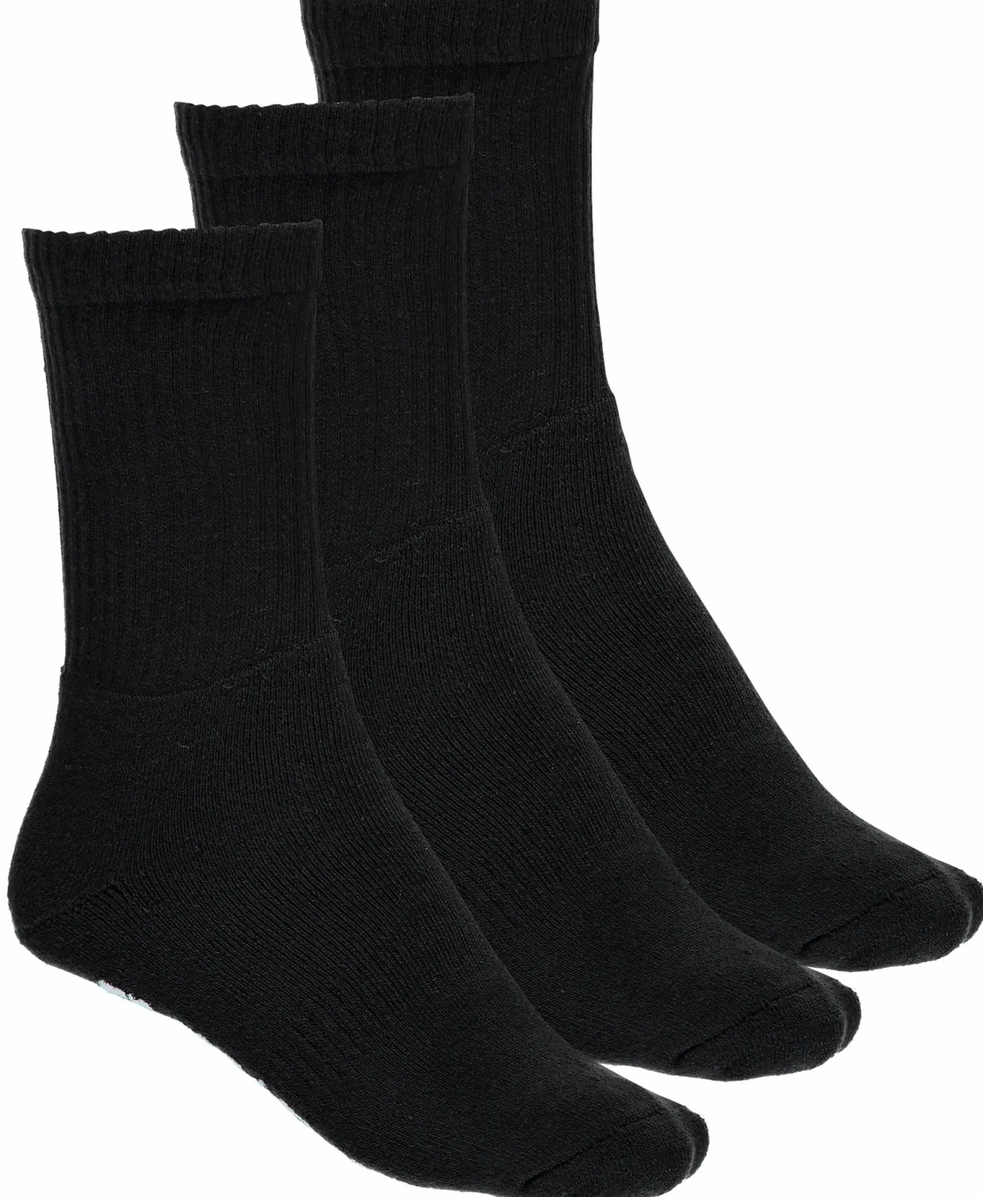 Kolme paria sukkia. 55% puuvillaa, 40% polyesteriä, 4% polyamidia ja 1% elastaania.