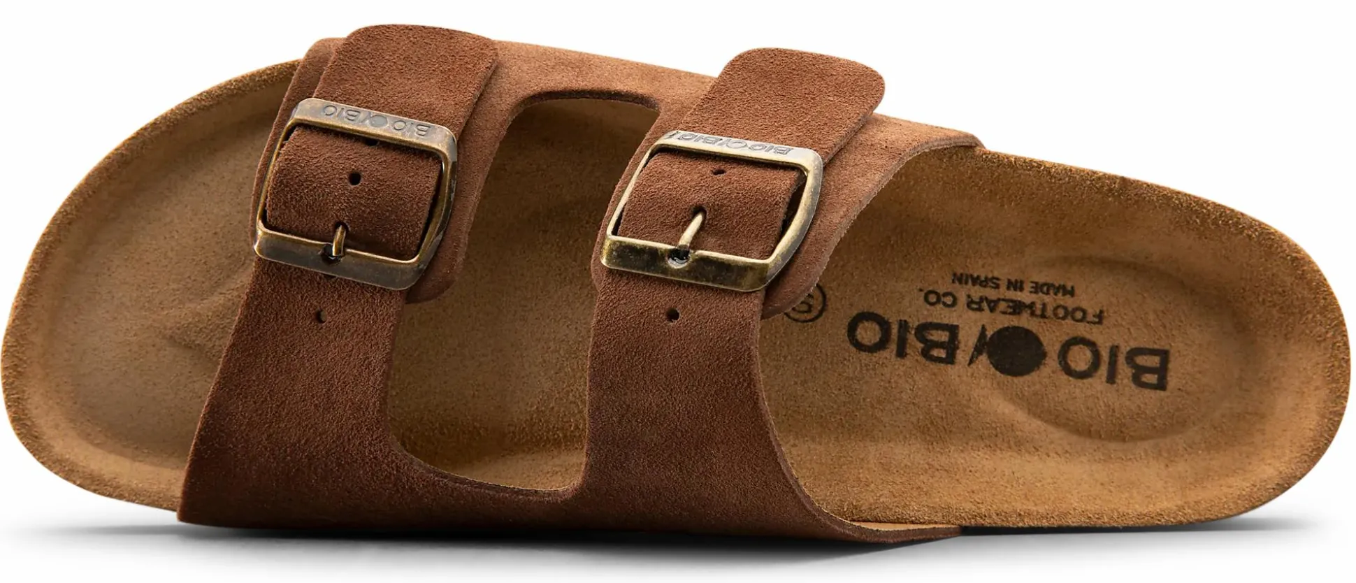 Sandaali, jossa on pehmeä ja mukava pohjallinen. Sisäpohja ja päällinen kestävää mokkaa, vaimennettu välipohja EVA-vaahtoa.
