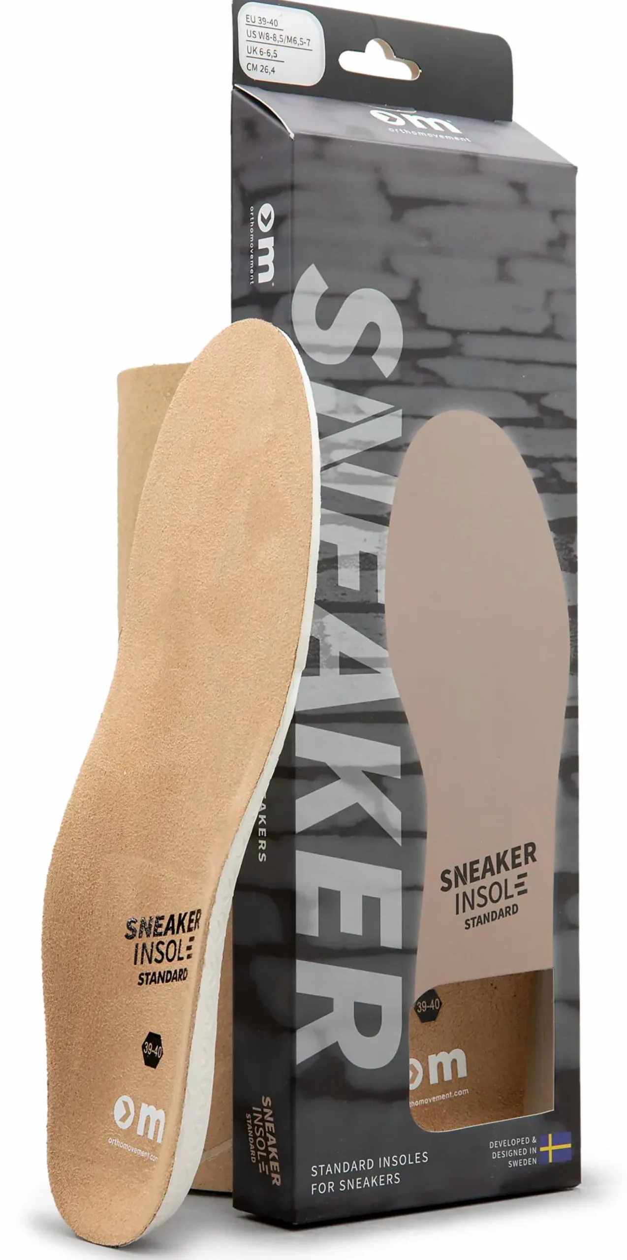 Ortho Movement Sneaker Insole Standard on parannettu pohjallinen verrattuna tennareiden alkuperäisiin pohjallisiin. Ortho Movementin pohjalliset vaimentavat tehokkaammin, ovat mukavammat ja ehkäisevät hiertymiä ja rakkoja. Kun alkuperäiset pohjalliset ovat kuluneet tai alkavat haista pahalle, Sneaker Insole Standard -pohjalliset ovat täydellinen korvaava vaihtoehto! Puhdistus/hoito: Pohjalliset eivät kestä korkeaa lämpöä. Käytä puhdistuksessa haaleaa vettä ja saippuaa. Anna kuivua huoneenlämmössä. Älä pese pesukoneessa.