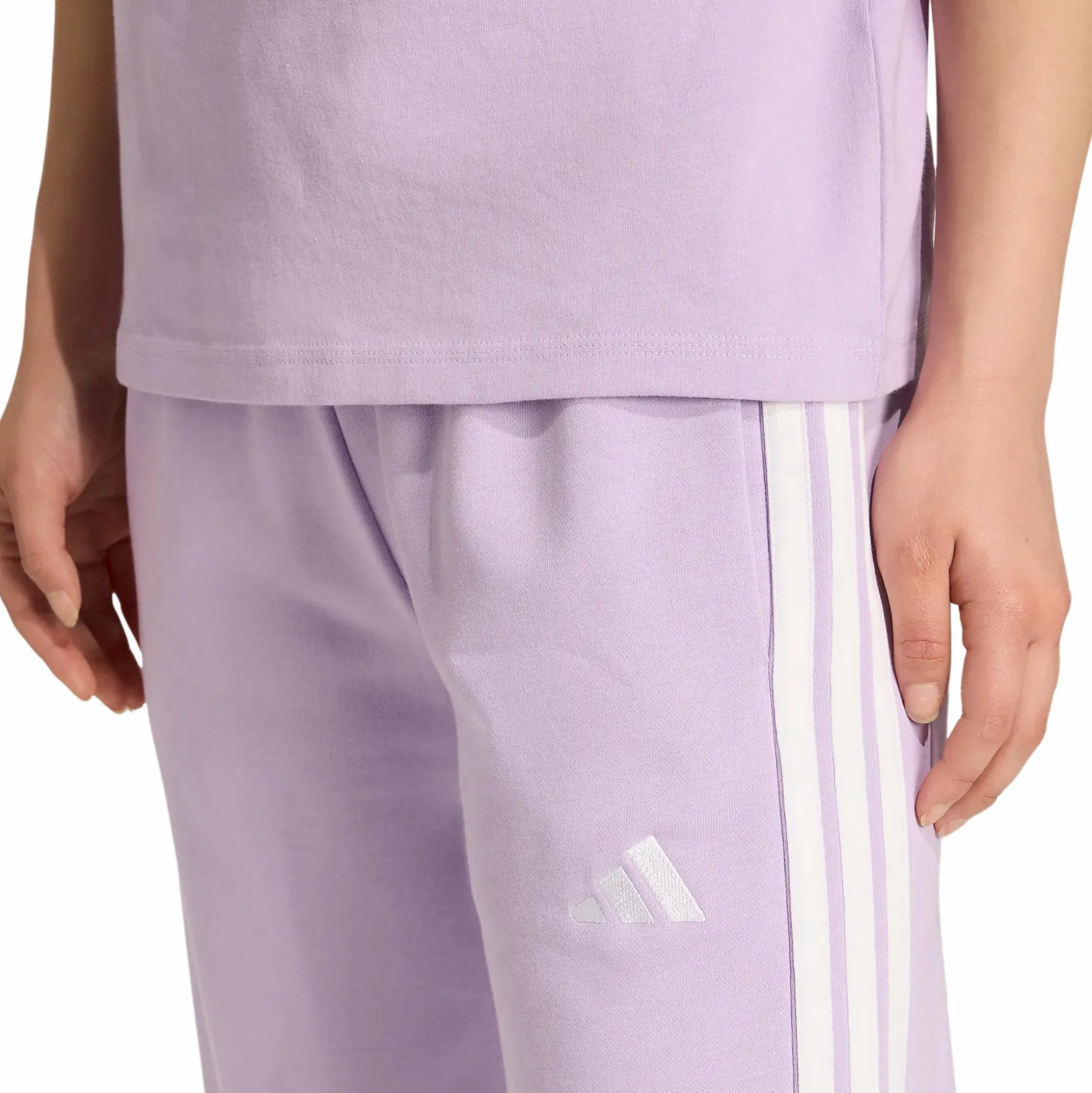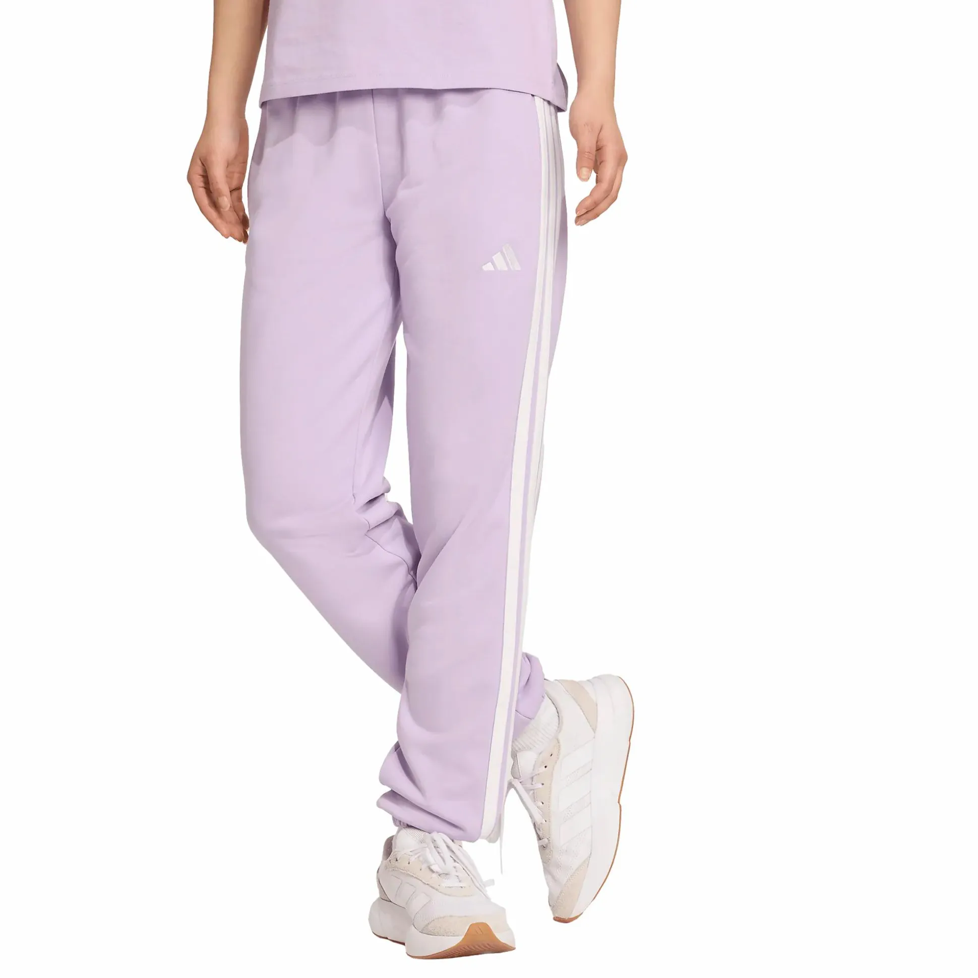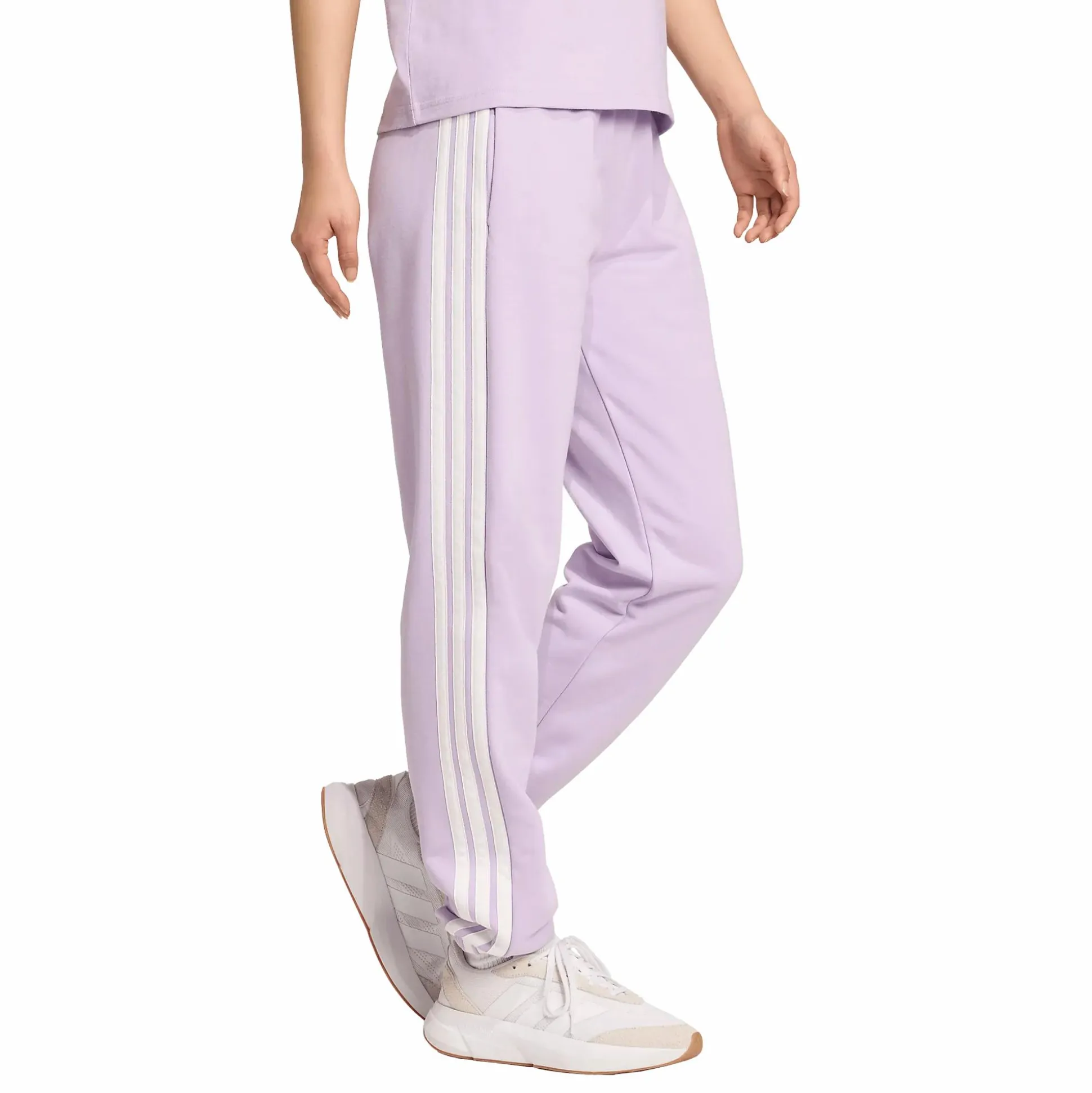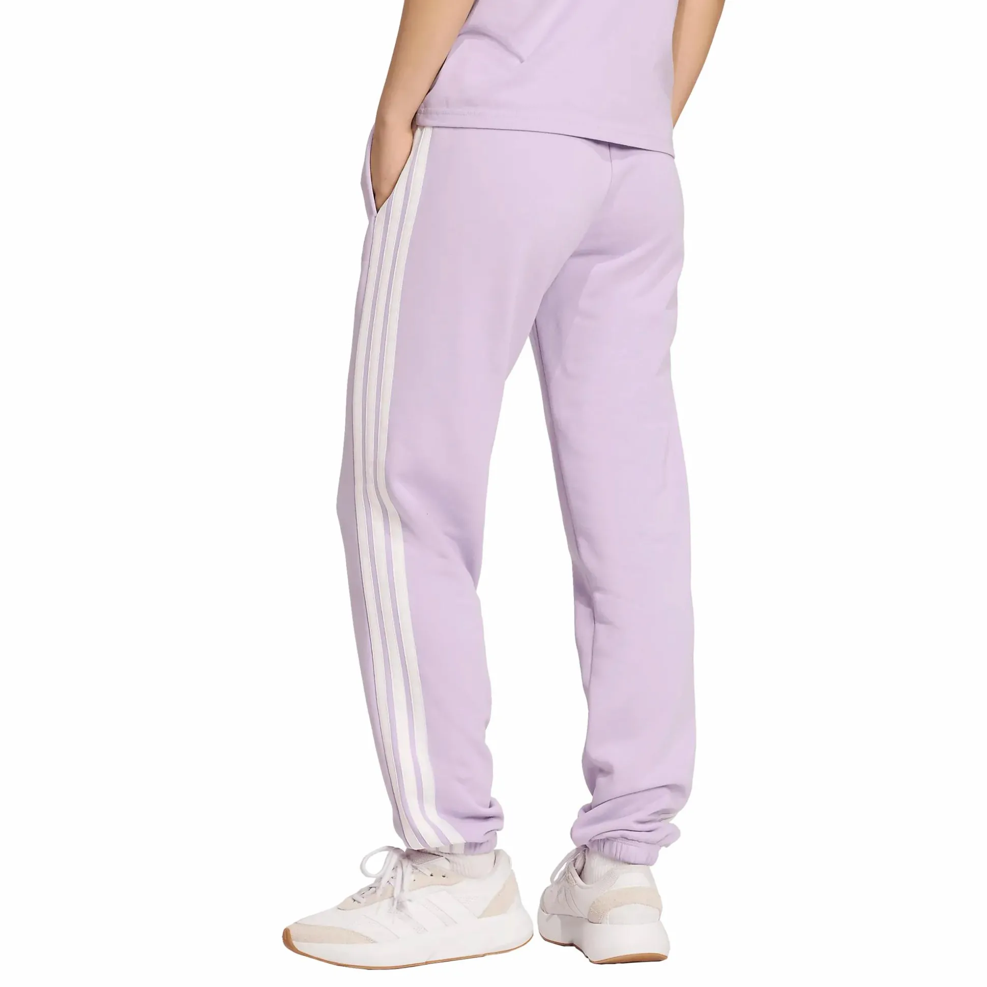 Essentials 3-Stripes French Terry Cuffed Pants adidakselta on suunniteltu tarjoamaan mukavuutta arjessa, olitpa sitten rentoutumassa kotona tai hoitamassa asioita. Housut on valmistettu pehmeästä ja joustavasta ranskalaisesta froteesta, joka on sekoitus puuvillaa ja kierrätettyä polyesteriä ja tuntuu miellyttävältä ihoa vasten. Housuissa on keski-korkea, joustava vyötärö kiristysnyörillä säädettävää mukavuutta varten. Klassiset 3-Stripes sivuilla ja ribatut resorit lahkeensuissa antavat urheilullisen ilmeen, joka sopii sekä treeniin että arkikäyttöön. Kahteen käytännölliseen sivutaskuun mahtuu puhelin, avaimet tai muita pikkutavaroita. Mukava ja tyylikäs perusvaate, joka on helppo yhdistää huppariin tai t-paitaan.