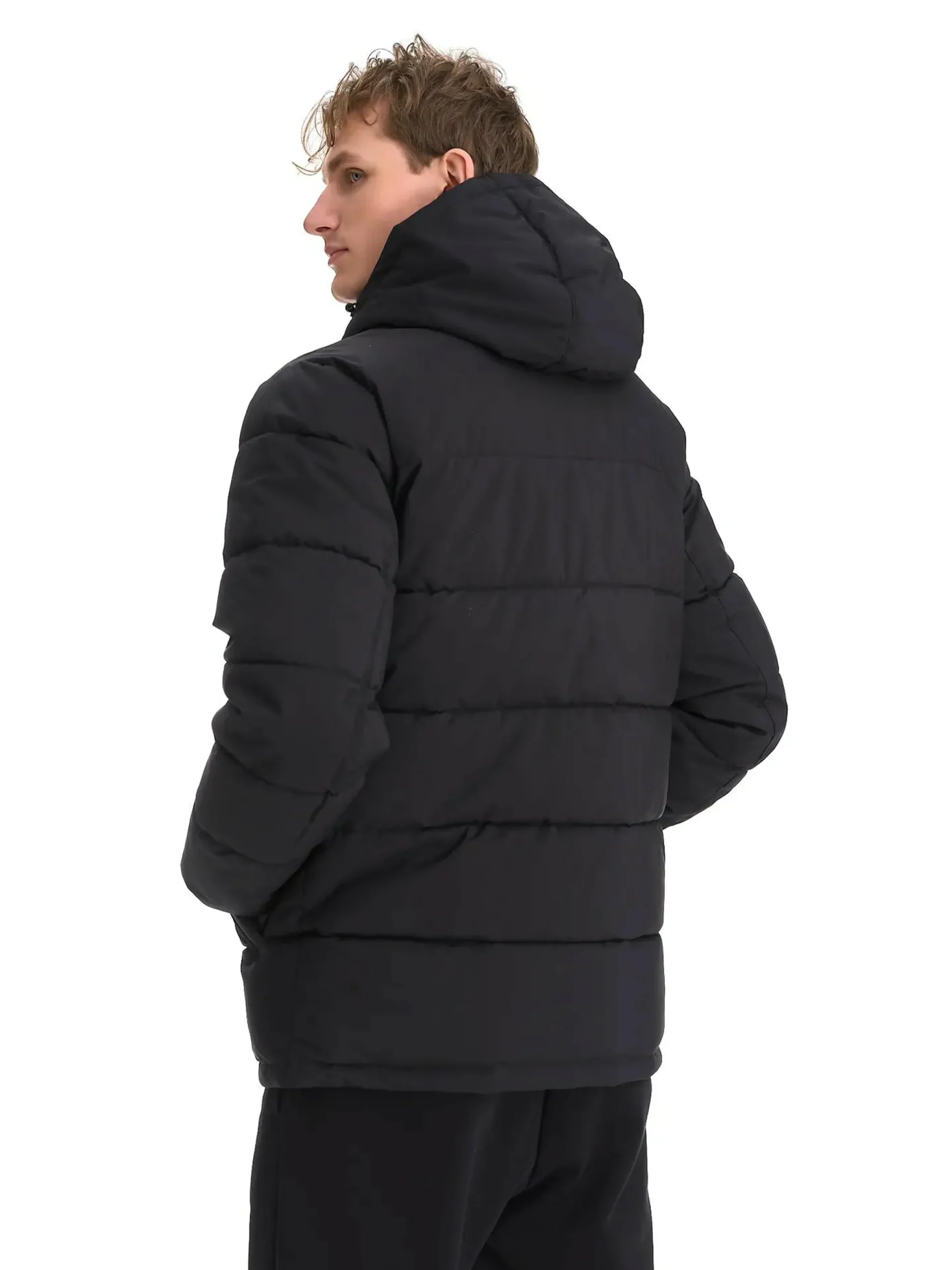 Tämä miesten talvitakki on suunniteltu tarjoamaan sekä suojaa että mukavuutta kylminä talvipäivinä. Takissa on pöyheä ulkopinta ja se on eristetty synteettisellä, untuvamaisella toppauksella. Pintamateriaali on sekä tuulta- että vettähylkivä, ja siinä on PFAS-vapaa pintakäsittely, mikä tekee takista kestävämmän valinnan. Lisätoiminnallisuutta varten takissa on säädettävä huppu sekä joustavat hihansuut, jotka pitävät kylmän ja tuulen ulkopuolella. Takissa on sekä sivutaskut että vetoketjullinen rintatasku, jotka tarjoavat kätevää säilytystilaa pienemmille tavaroille.