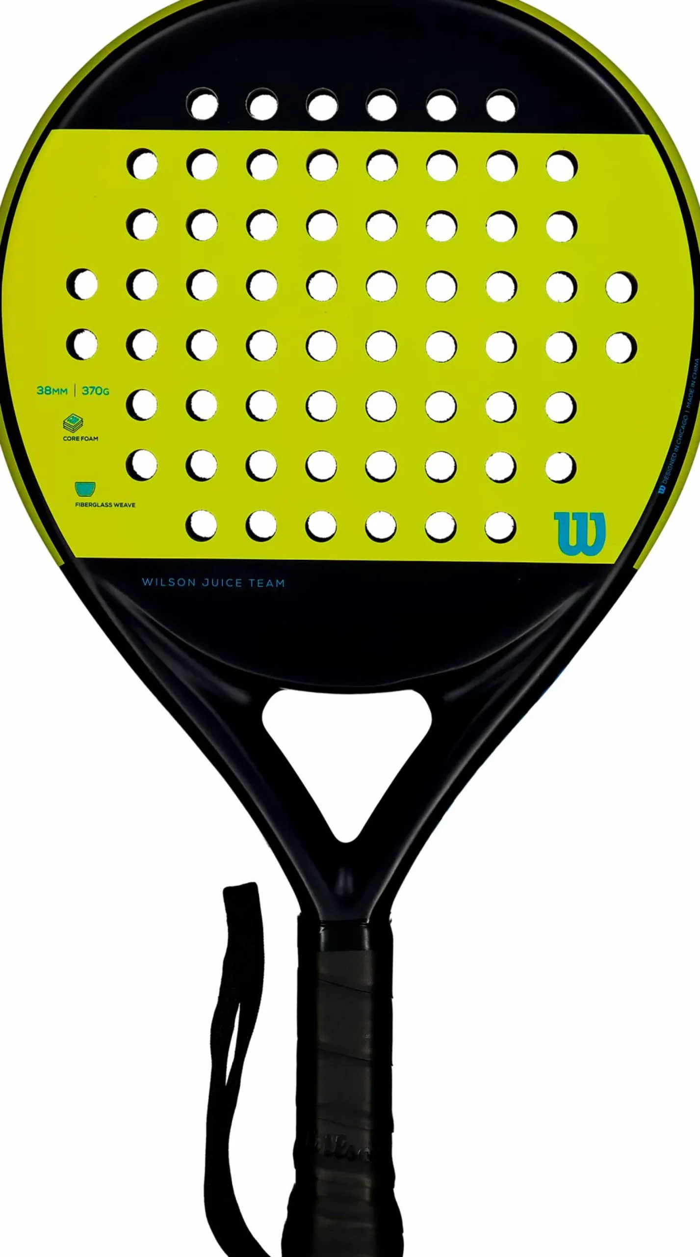 Wilson Juice Team on aloittelijalle sopiva ja anteeksiantava padelmaila, jossa on optimaalinen pelattavuus ja suorituskyky. Juice Team on kudottua lasikuitua, joka varmistaa miellyttävän ja vakaan tuntuman. Mailan pehmeä EVA-vaahto tehostaa vaimennusta, mikä saa aikaan täydellisen tasapainon mukavuuden ja tehon välille. Sharp Hole Technology on edistyksellinen poraustekniikka, joka antaa hyvän pidon pallosta ja parantaa painetta jokaisessa lyönnissä. Sublime Grip -grippiteippi tarjoaa ihanteellisen yhdistelmän pehmeyttä, pitävyyttä, mukavuutta ja imukykyä, mikä takaa varman pidon jokaisessa ottelussa.