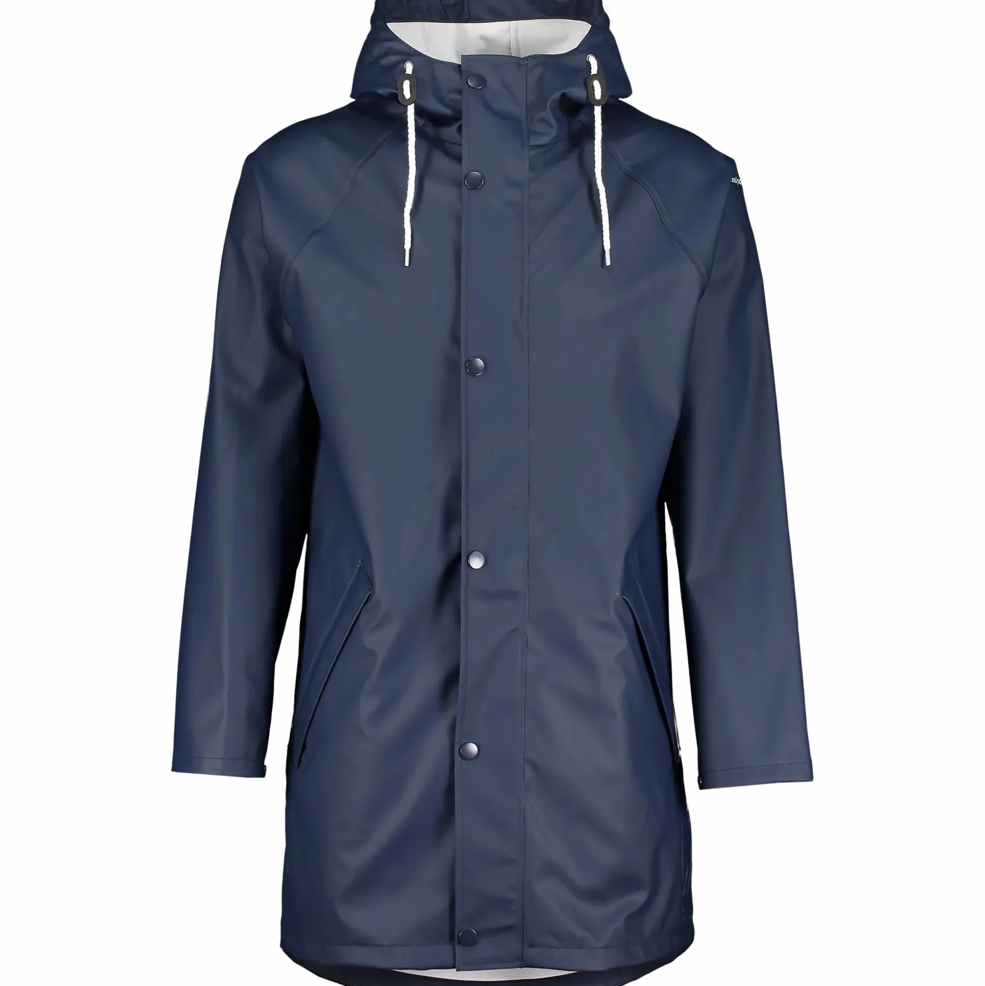 Pitkähkö sadetakki, jossa on säädettävä huppu ja sivutaskut. Takissa on vetoketju ja napit edessä. Saumat ovat sinetöityjä ja takin vesipilariarvo on 5000 mm. Täydellinen heittää päälle sateisina päivinä ulkona.